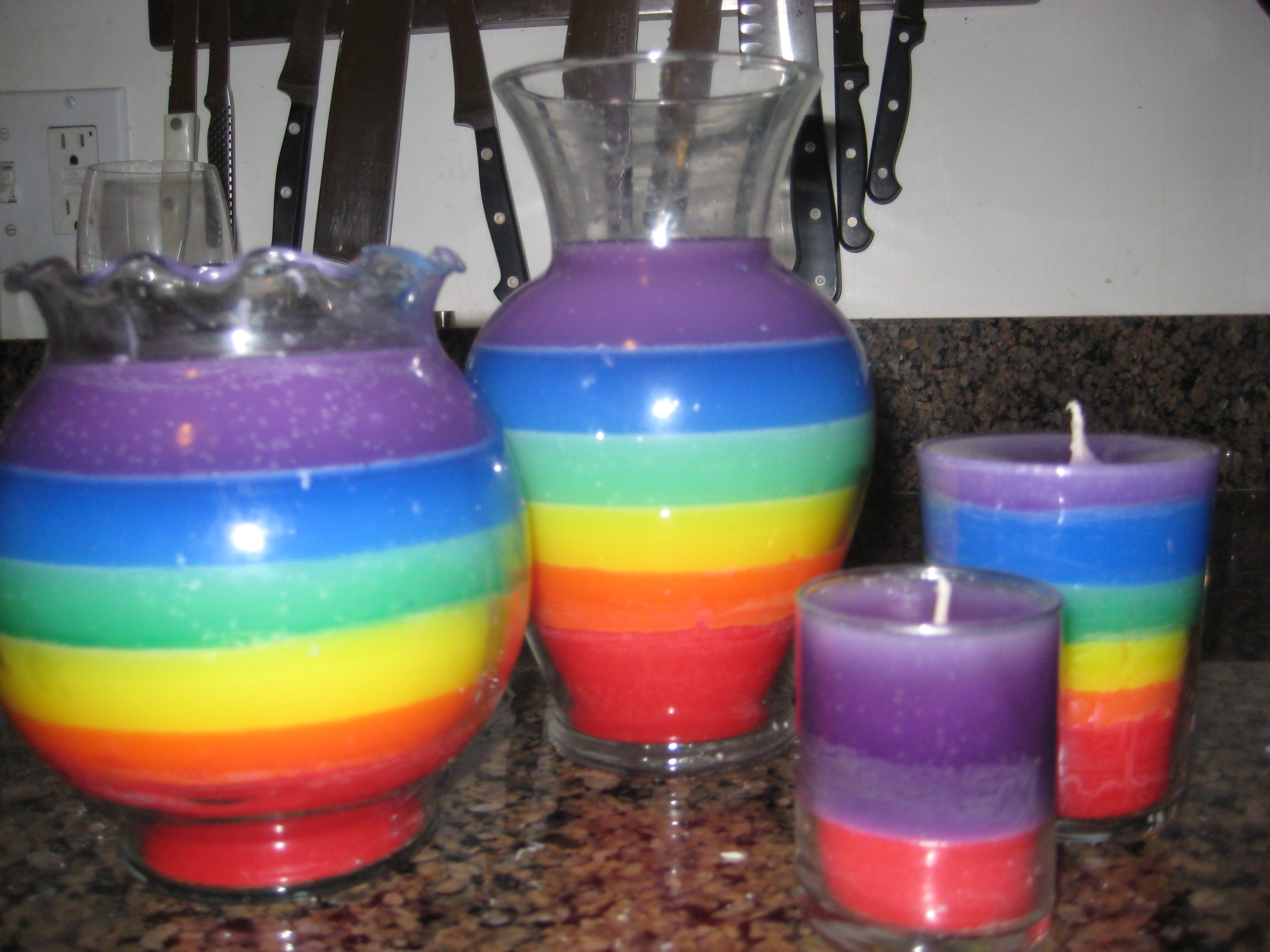 Trim your wicks, and you’ve got rainbow candles, suitable for gifting, meditating on chakras with if that’s your thing, or in my case showing them off and smiling.
