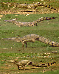 According to alligator wrestlers, there is no such thing as a bad wrestler because if you’re bad, you’re dead. The normal gait of alligators and crocodiles on land is the “belly crawl,” but they are the only reptiles who can bring their legs directly under themselves in a “high walk.” In this position, the front and back legs move as synchronous pairs to launch the alligator at prey at speeds of 30 mph for short distances. There are some differences in how to handle an attack. Growing up in Florida, the only place in the world home to both alligators and crocodiles, I have an interest in distinguishing between them.